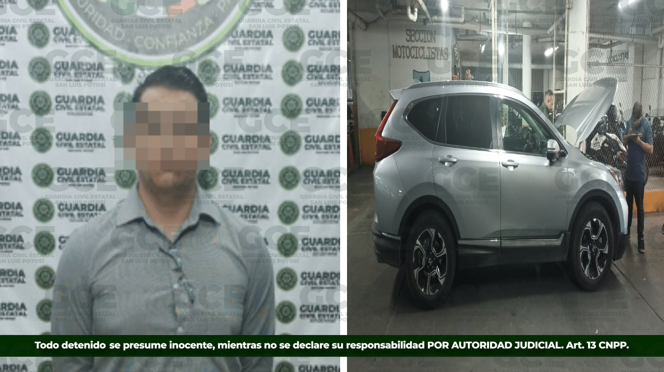 Detienen a hombre en la capital potosina con vehículo robado y documentos falsos