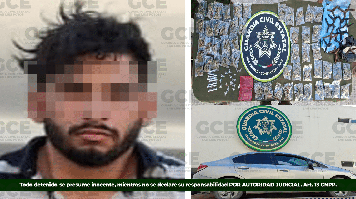 Un operativo de la Guardia Civil Estatal en la zona Huasteca derivó en la detención de un joven identificado como Jorge “N”, de 21 años, en la colonia El Porvenir, en Ciudad Valles.