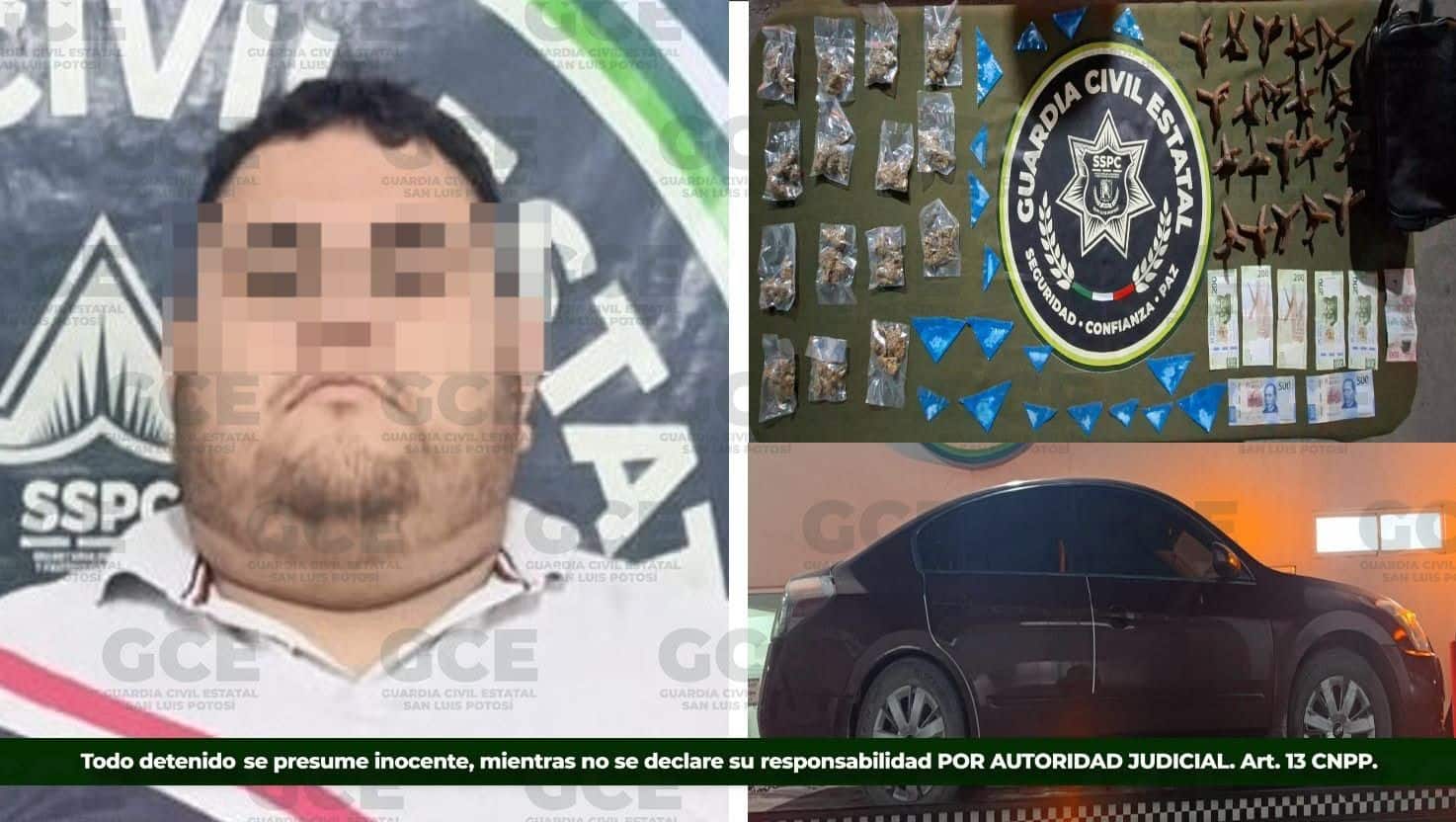 * El aseguramiento se realizó durante un operativo de vigilancia en la colonia Hidalgo en Ciudad Valles; el detenido fue puesto a disposición de la Fiscalía