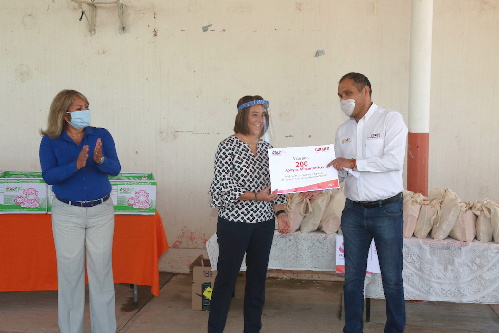 A través de la estrategia de la campaña Por una Alimentación Sana, Variada y Suficiente, el Sistema Estatal para el Desarrollo Integral de la Familia (DIF), busca entregar apoyos alimentarios y hacer llegar el mensaje de que es fundamental que las familias tengan una alimentación adecuada, aseveró Lorena Valle Rodríguez, durante la entrega de paquetes alimentarios, paquetes para bebé y otros apoyos a familias de la localidad Sector Carrillo en Mexquitic de Carmona.