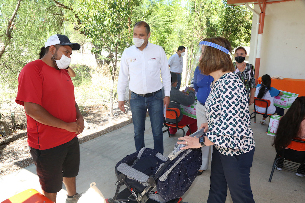 Al dirigirse a las madres y padres con hijas e hijos que participan en programas del Consejo Nacional de Fomento Educativo (Conafe), que acudieron en representación de las 200 familias beneficiadas, la Presidenta de la Junta Directiva del DIF Estatal, destacó que mediante estos apoyos se busca decir a las familias que no están solas, sobre todo en esta contingencia por el Covid-19.