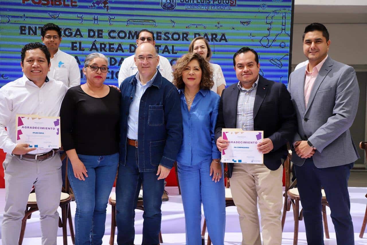 Tanto el Presidente Municipal como la Presidenta del DIF Capitalino agradecieron a Dai Compresores y Atlas Copco de México el donativo que como empresas socialmente responsables, realizaron en beneficio de las familias potosinas, pues en este espacio se atienden usuarios y usuarias de la UBR, sus familias y público en general.