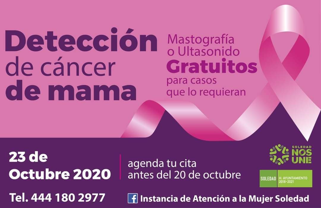 El DIF de Soledad reconoce la salud como pieza fundamental para lograr el bienestar social de las soledenses, por ello, durante el mes de octubre se busca concientizar a las mujeres y acercar los servicios médicos de detección y tratamiento de esta enfermedad.