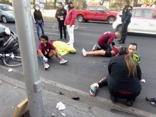 Peregrinos que rodaban en bicicleta con rumbo al Zócalo de la Ciudad de México fueron arrollados por un auto la mañana de este domingo sobre la Calzada de Tlalpan.