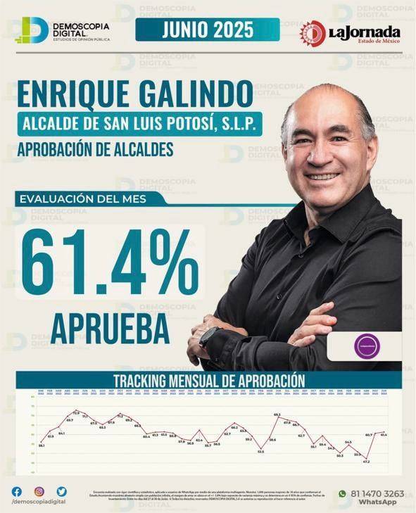 Con visión metropolitana y políticas públicas innovadoras, Enrique Galindo se ha consolidado como un referente nacional de buen gobierno municipal. Su aprobación no sólo es reflejo del trabajo cotidiano en las calles, sino también de una agenda social con alto sentido humano, que prioriza la inclusión, la sostenibilidad y la reconstrucción del tejido comunitario en San Luis Potosí.