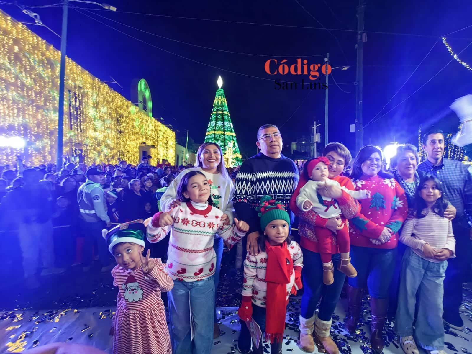 La magia de la navidad iluminó esta noche el primer cuadro del municipio de Soledad de Graciano Sánchez, luego de que el alcalde, Juan Manuel Navarro Muñiz realizó el encendido del Árbol monumental de Navidad y la inauguración de la Villa Navideña que rodea el jardín principal, una Pista de Hielo, así como del Nacimiento colocado en el patio del Ayuntamiento, dando inicio a las celebraciones navideñas 2025.