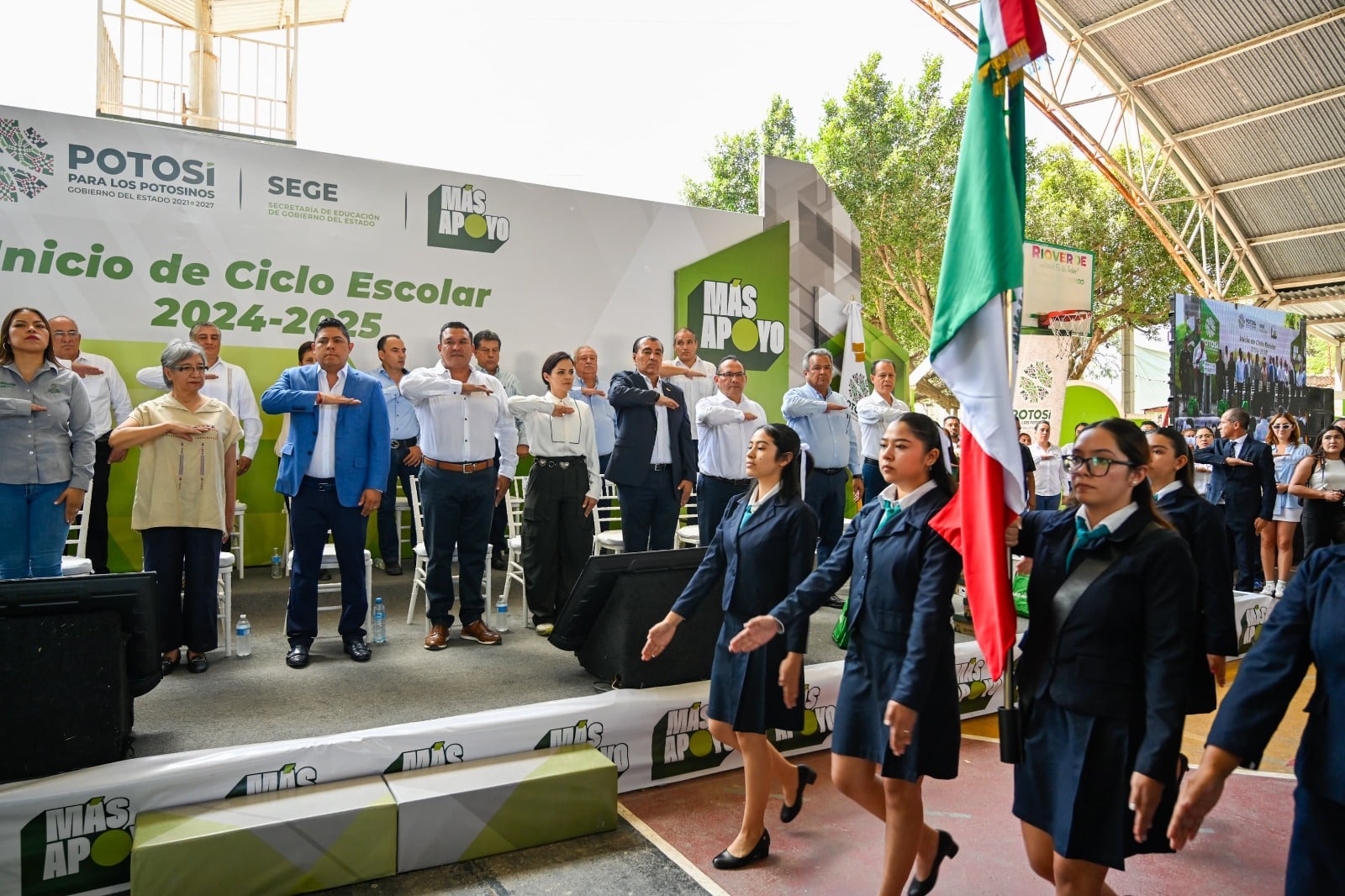 El Gobernador inauguró el ciclo escolar desde el Deportivo Ferrocarrilero en Rioverde, donde, ante autoridades educativas y representantes sindicales, destacó la importancia de brindar a la niñez y juventud potosina las herramientas necesarias para su desarrollo, en línea con la modernización que ha experimentado el estado. Gallardo entregó más de mil paquetes escolares como parte del programa “Potosí para la Educación”, con el objetivo de cumplir la meta estatal de distribuir 300 mil mochilas, 150 mil pares de zapatos y 220 mil paquetes de útiles escolares, buscando así apoyar la economía familiar y prevenir la deserción escolar.