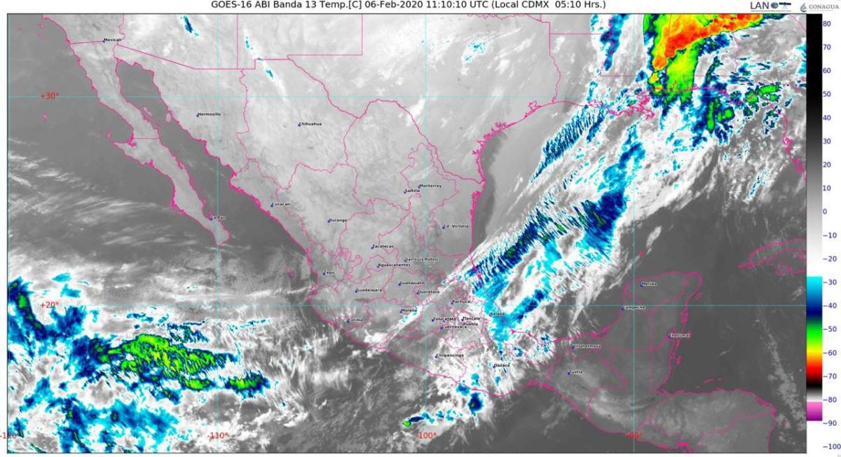 Para hoy, la masa de aire frío que impulsa al frente frío número 38 ocasionará un descenso en la temperatura sobre los estados del noreste y oriente de México, así como evento de «Norte» con rachas superiores a los 70 km/h en algunos estados de la región, incluyendo a San Luis Potosí.
