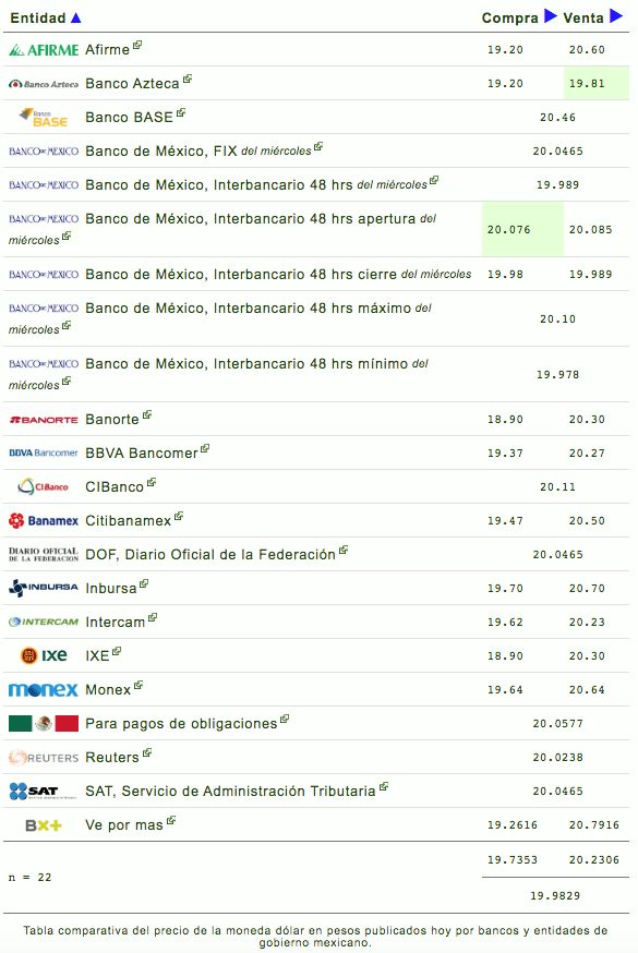 Esta mañana el peso mexicano mantiene su tendencia de consolidación ante el dólar, estando apenas por encima de las veinte unidades en el tipo de cambio, pero con una marcada tendencia a regresar al rango de las 19 unidades. El peso mexicano se ha fortalecido por un sentimiento generalizado positivo en cuanto a lo que viene para la economía.