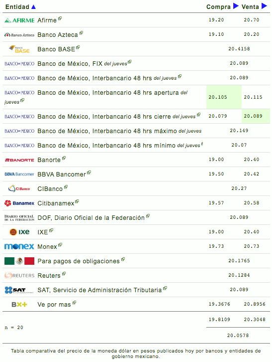 El dólar se cotiza en $20.16 pesos mexicanos, esto representa un aumento del 0.34% con respecto al día de ayer.