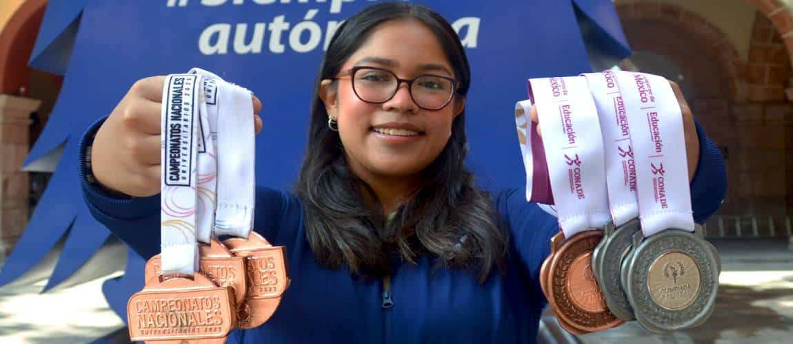 Andrea Sandoval González, estudiante del tercer semestre de la Licenciatura en Administración en la Facultad de Contaduría y Administración (FCA) de la Universidad Autónoma de San Luis Potosí (UASLP), obtuvo un destacado resultado en la Olimpiada Nacional CONADE 2025, al conquistar dos medallas de plata y una de bronce en la disciplina de halterofilia.
