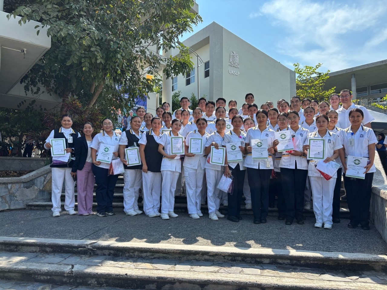 La Universidad Autónoma de San Luis Potosí (UASLP) y los Servicios de Salud del Estado entregaron el martes 18 de febrero reconocimientos a estudiantes de la Licenciatura en Enfermería con Orientación en Obstetricia de la Coordinación Académica Región Huasteca Sur (CARHS) en Tamazunchale, por su participación en las campañas «Cuidarse está Cool» y «Jornada de Colposcopias» durante 2024; además, se realizó la donación de material de curación en beneficio del campus
