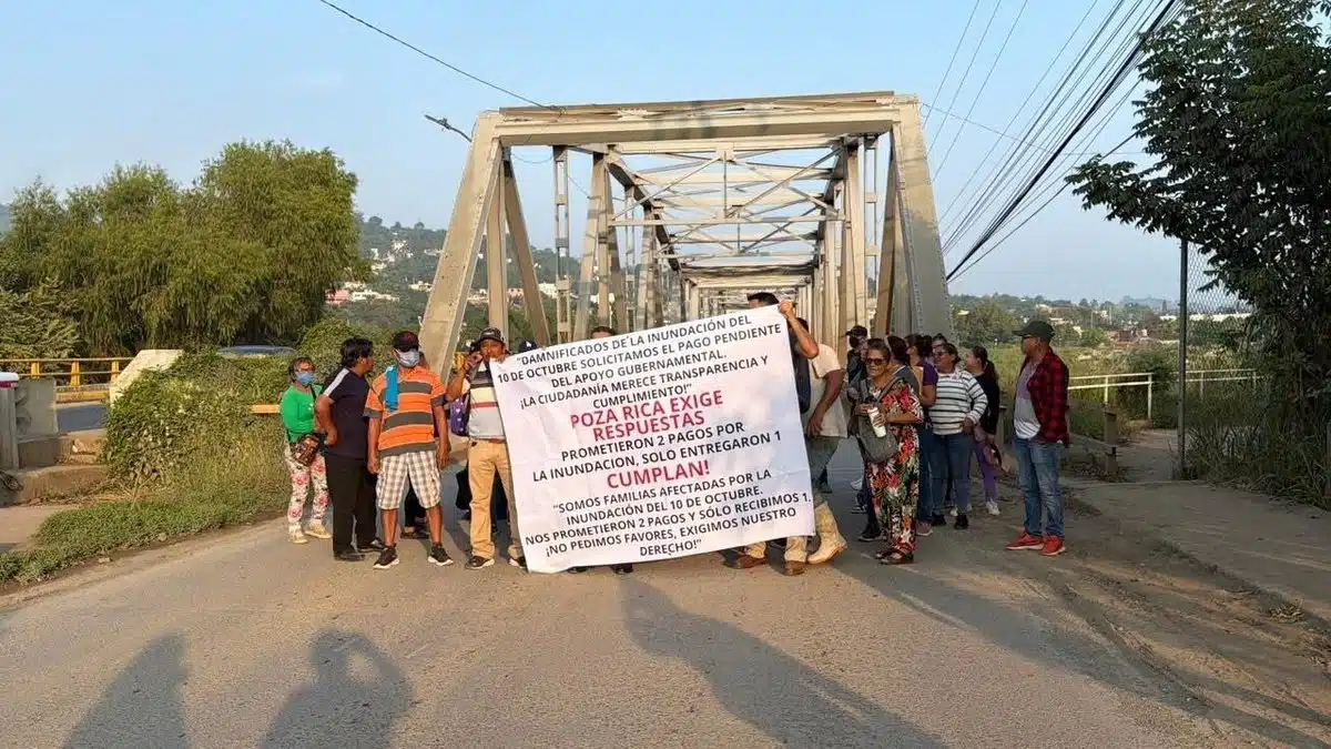 Habitantes de diversas colonias de Poza Rica, Veracruz, bloquearon este martes el puente Cazones 2 para exigir el pago pendiente de apoyos federales por los daños que dejaron las inundaciones de octubre. Aunque recibieron un primer depósito, denunciaron que al intentar cobrar el segundo sus nombres «desaparecieron del sistema».