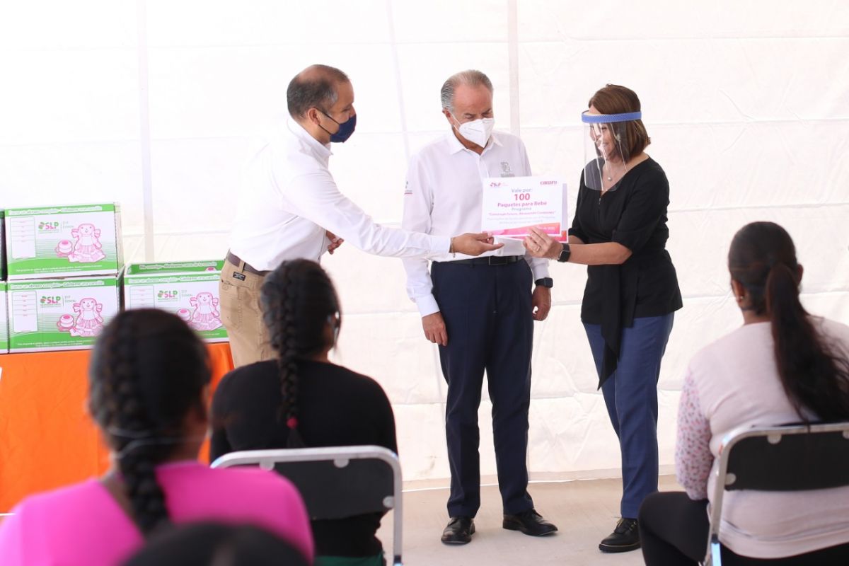 En el marco de la gira de trabajo del Gobernador del Estado Juan Manuel Carreras López por Villa de Reyes, acompañado de la Presidenta de la Junta Directiva del Sistema Estatal para el Desarrollo Integral de la Familia (DIF), Lorena Valle Rodríguez, entregaron apoyos alimentarios, ayudas técnicas, paquetes para bebé y kits familiares, a jefas de familia que participan en programas del Consejo Nacional de Fomento Educativo (Conafe).