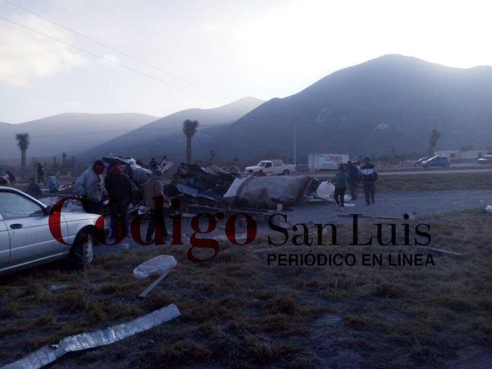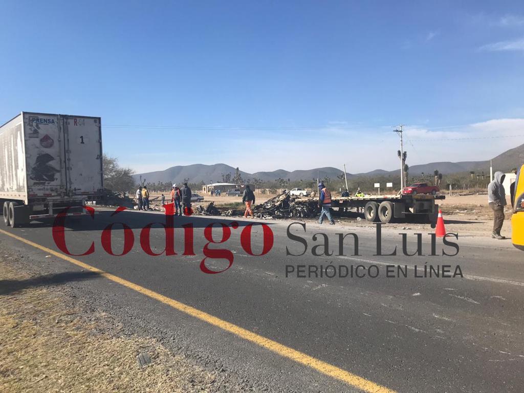 Esta mañana se reporta mortal accidente entre unidades de carga pesada en el kilómetro 83 tramo Matehuala-San Luis orientación de norte a sur; con saldo de un operador de trailer fallecido.
