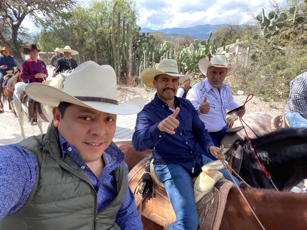 Villa de la Paz, SLP. – Todo un éxito resultó la cabalgata que con motivo de la Feria Regional de La Paz (FEREPAZ), se celebró en el altiplano potosino teniendo como anfitrión al edil, Armando Torres, quien junto al diputado federal, Ricardo Gallardo y el alcalde de Matehuala encabezó la travesía.