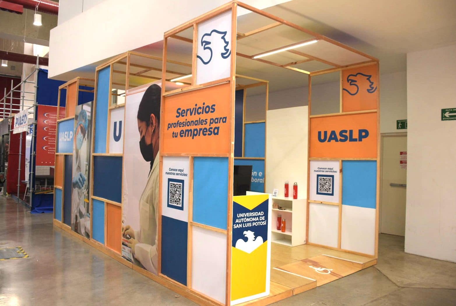 Durante el evento, que se lleva a cabo los días 29 y 30 de mayo, en el Centro de Convenciones, la UASLP difunde los servicios externos que brinda a empresas como el Laboratorio de Investigación de Alimentos de la Facultad de Ciencias Químicas y el Laboratorio de Investigación en Ciencias Ambientales de la Facultad de Medicina, los cuales realizan estudios especializados en sus respectivas áreas, apoyando tanto a la comunidad científica como al sector productivo.
