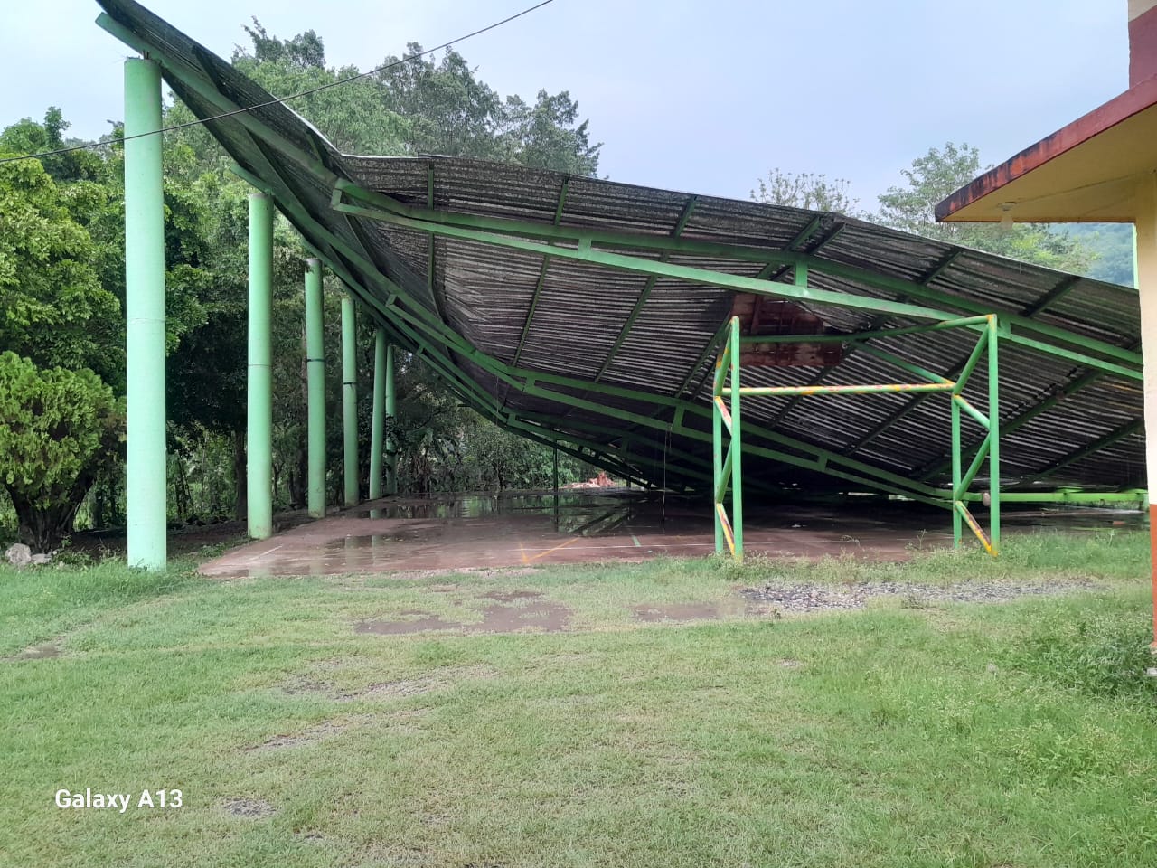 Zona Huasteca, San Luis Potosí.- Una tromba acompañada de intensas ráfagas de viento provocó cuantiosos daños materiales la noche de este lunes en varios municipios de la Huasteca potosina, el fenómeno dejó a su paso techos colapsados en galerías e instituciones educativas, así como afectaciones en carreteras.