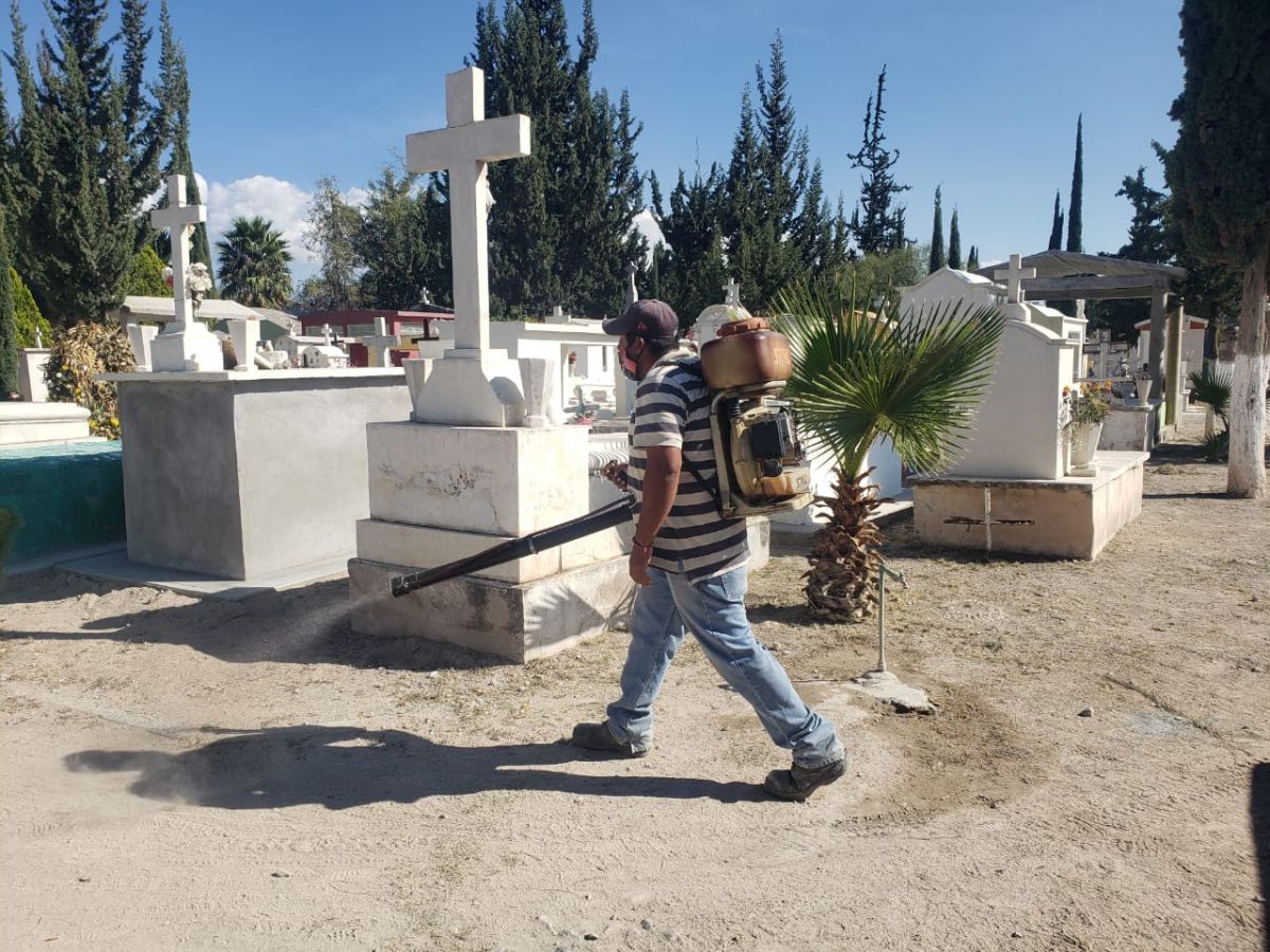 Para evitar riesgos entre la población que acude a los cementerios, el Gobierno Municipal de Matehuala, a través del área de Servicios Públicos Municipales, llevó a cabo la fumigación en los dos panteones municipales, de esta manera se procura la seguridad en la salud ante la presencia del mosquito transmisor del Dengue en la región.