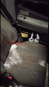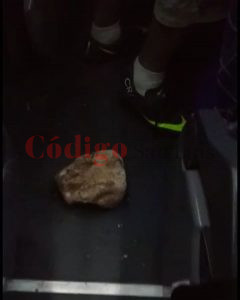 La roca atravesó el parabrisas del lado del conductor y siguió su camino hasta destruir uno de los vidrios que dividía la cabina principal de los pasajeros. Afortunadamente, el operador logró evadir la roca y esta no le pegó, si a caso, tuvo unos rasguños por los vidrios rotos.