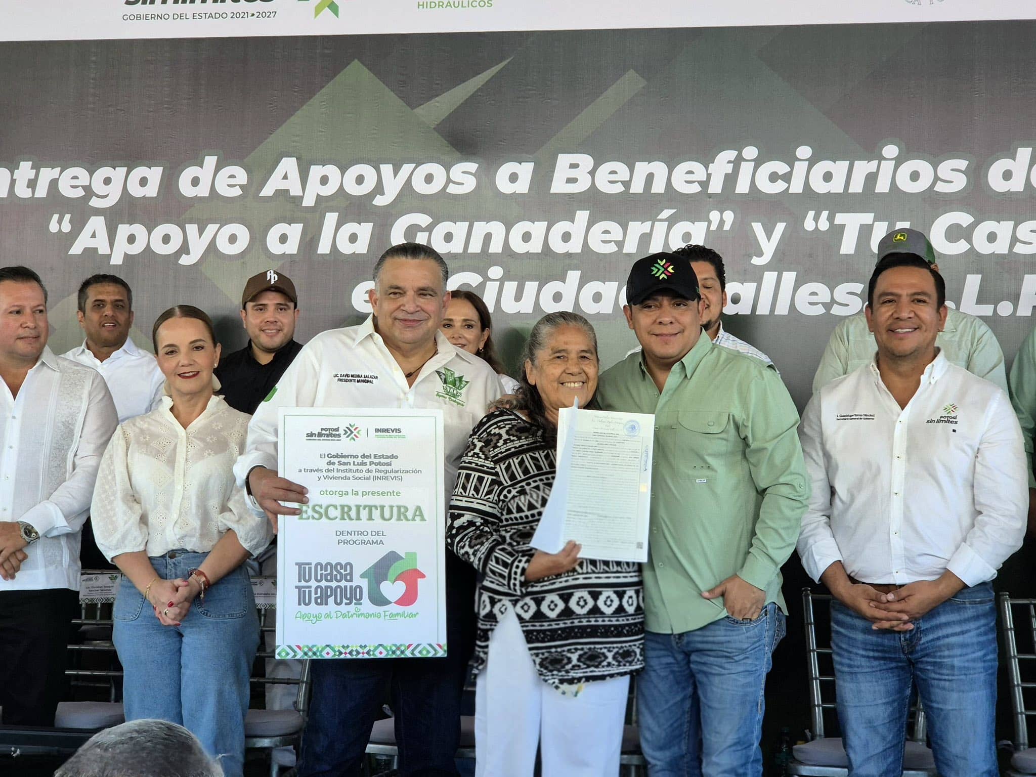 Ciudad Valles, S.L.P. – En una jornada de trabajo que concentró acciones de desarrollo social, productivo y educativo, el gobernador Ricardo Gallardo Cardona encabezó en Ciudad Valles la entrega de escrituras a familias beneficiarias del programa de regularización que impulsa el INREVIS, además de apoyos a productores ganaderos y agrícolas dentro del programa “Apoyo a la Ganadería”, con una inversión estatal de 20 millones de pesos.