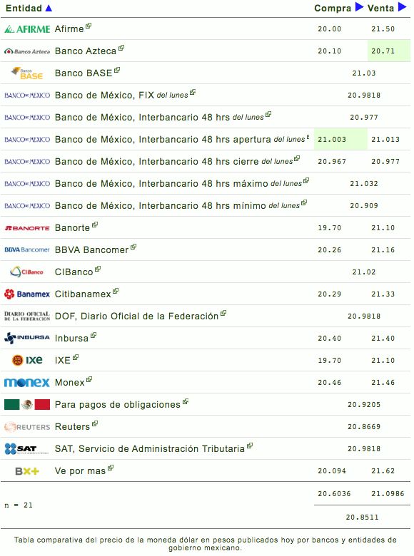 El tipo de cambio en ventanilla se encuentra en $20.26 a la venta en BBVA Bancomer, mientras que Banamex ofrece el dólar en $20.29 y Banorte $19.70