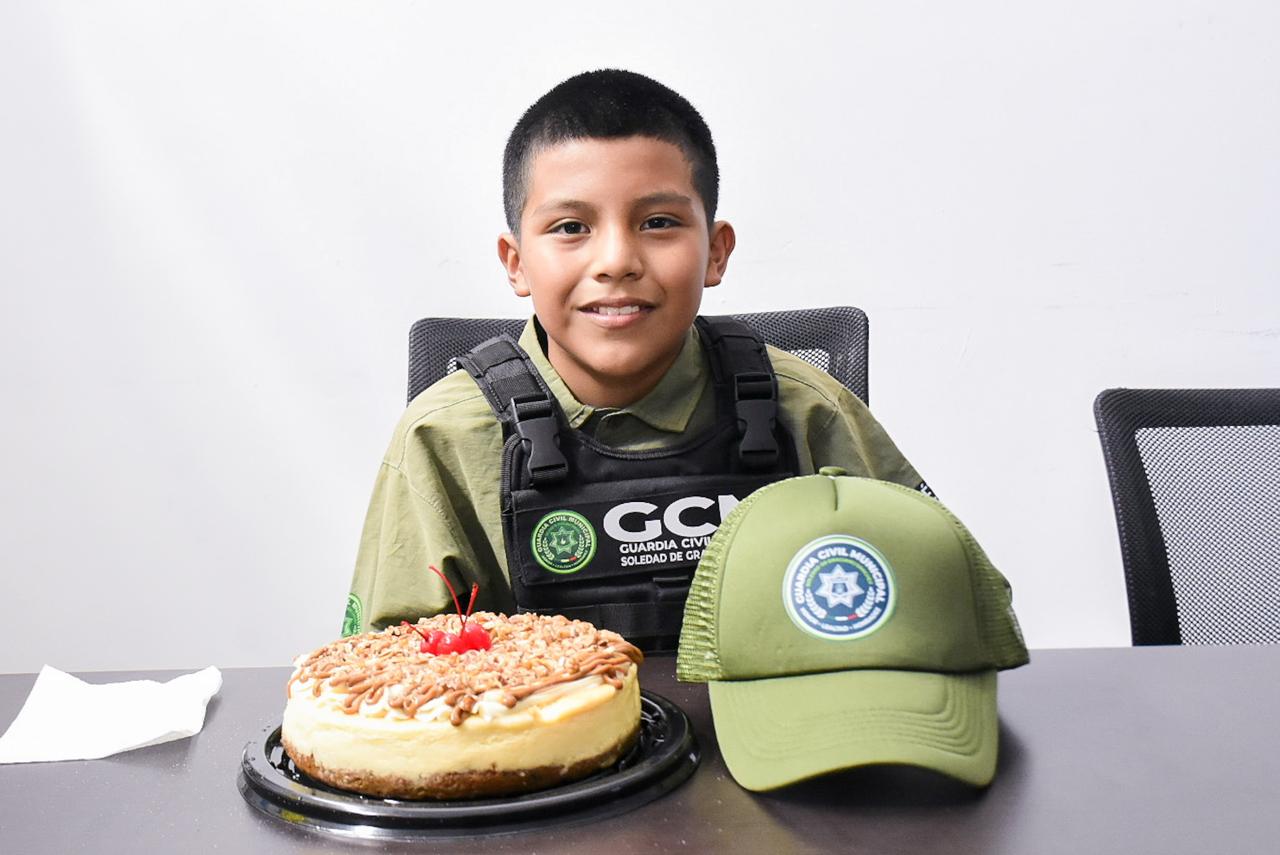 El pequeño, cuyo sueño era servir y proteger a su comunidad, se convirtió en mando y celebró su cumpleaños en la comandancia central de Pavón.