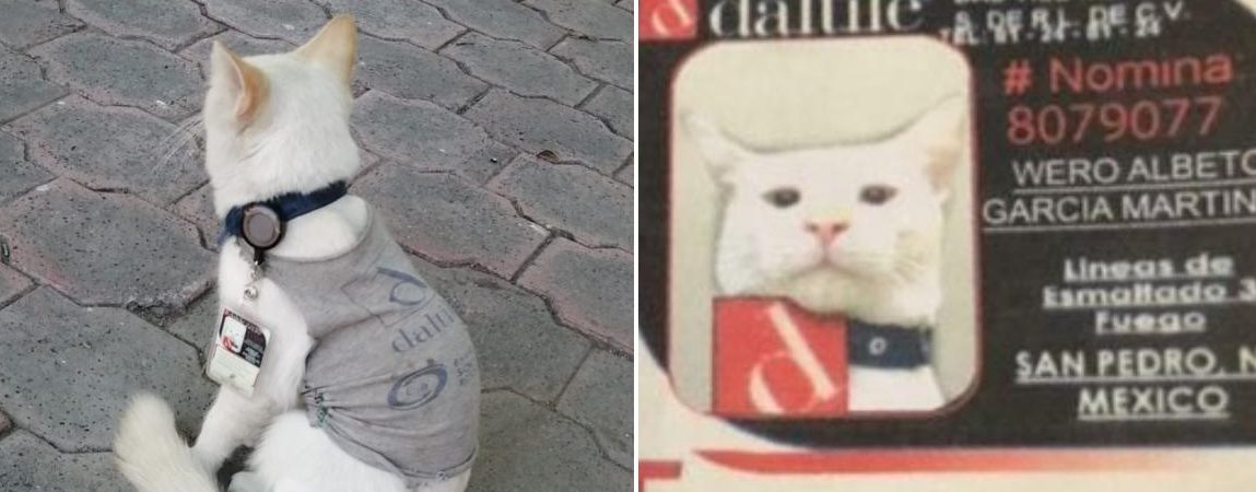 Aquel gato paso de ser un animal callejero a un “godín de oficina”, pues es tanto el amor de los empleados que hasta su propio gafete le dieron al minino. En la fotografía del gafete de Wero, se puede apreciar sus actividades que le gusta hacer. En el gafete también se observa que el nombre completo del gato es Wero Albeto García y su función en la empresa es dormir y dar el toque de ternura en la fabrica.