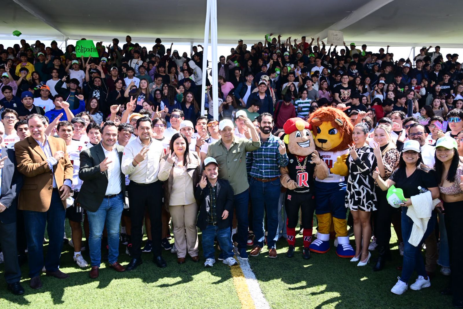 Finalmente, el Jefe de Gobierno Estatal en medio de un ambiente de fiesta estudiantil, acudió al evento del relanzamiento de la Universidad Politécnica en los campos deportivos, donde se presentó el equipo de fútbol americano y donde se dio a conocer la rehabilitación y el equipamiento de 15 laboratorios, además de la construcción de los gimnasios de pesas y multifuncional que también inauguró Ricardo Gallardo.