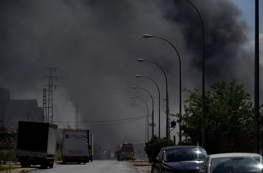 Un incendio en una nave de productos químicos en el Polígono Industrial la Red, en Alcalá de Guadaíra, Sevilla, generó una gran nube de humo negro este lunes, lo que llevó a las autoridades a recomendar a casi 80,000 vecinos permanecer en casa con puertas y ventanas cerradas.
