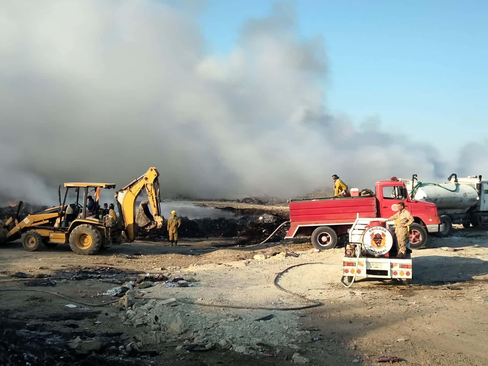 El siniestro en el basurero inicio el domingo a las 13 horas, se trasladaron pipas, mochilas aspersoras y personal para el combate, hasta este lunes se tenia controlado en un 40%.