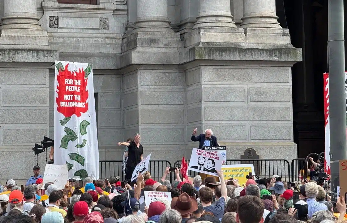 El senador Bernie Sanders encabezó uno de los mítines más grandes en Filadelfia, donde denunció que “el 1% más rico posee más que el 93% del país” y acusó a Trump de promover una autocracia. Subrayó que millones de estadounidenses viven de quincena en quincena, mientras un solo hombre posee más riqueza que la mitad de la población.