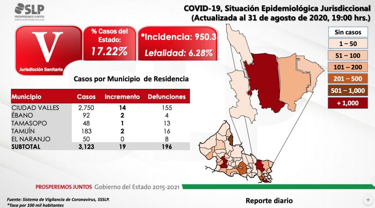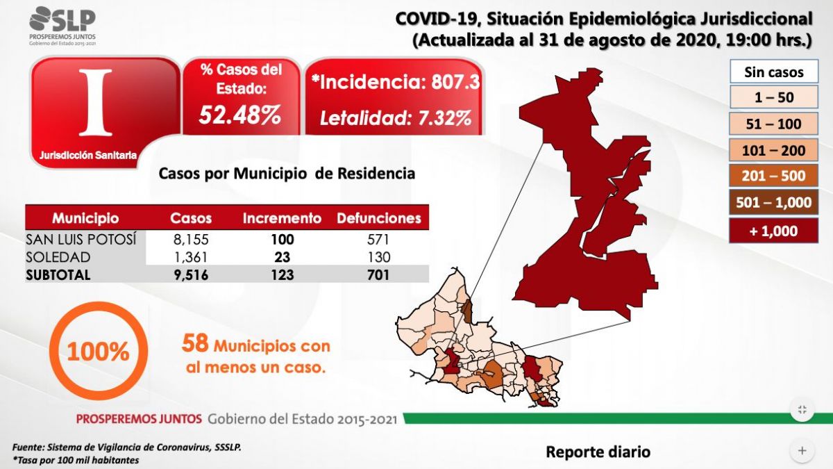 Los nuevos infectados presentaron síntomas del 28 de julio al 27 de agosto del 2020 y se presentaron en 21 de los municipios, siendo la capital el foco de mayores infecciones.