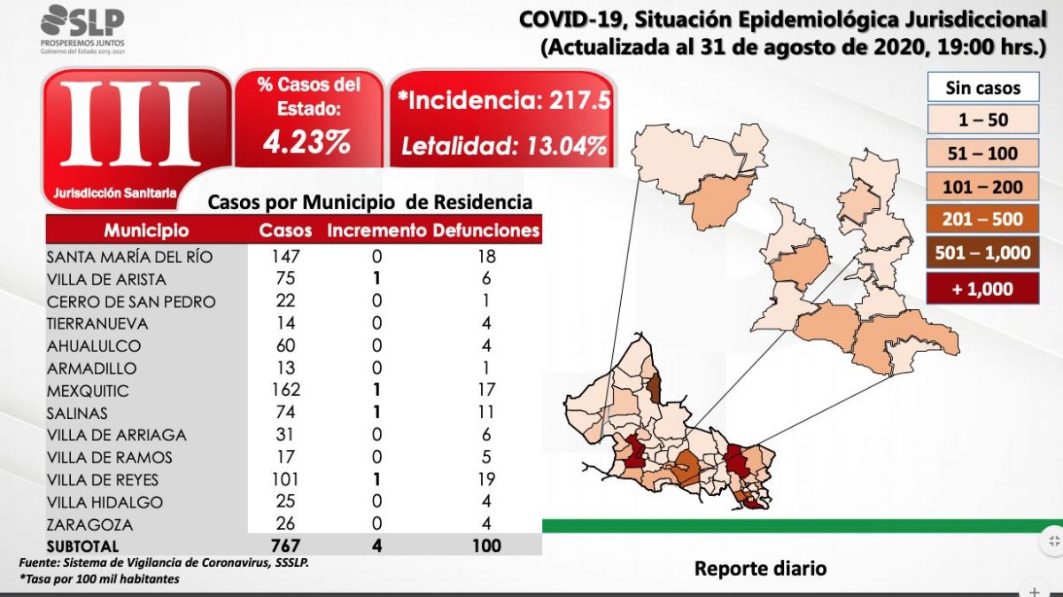 El Comité de Salud de SLP informa sobre el avance de la pandemia Covid-19 en territorio potosino. En las últimas 24 horas se confirmaron 176 casos nuevos, lo que representa una de las cifras mas bajas de los últimos 3 meses.