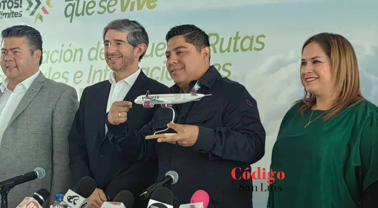 El gobernador Ricardo Gallardo Cardona anunció una expansión histórica en la conectividad aérea del estado tras consolidar un acuerdo con la aerolínea Volaris para la apertura de cinco nuevas rutas aéreas.