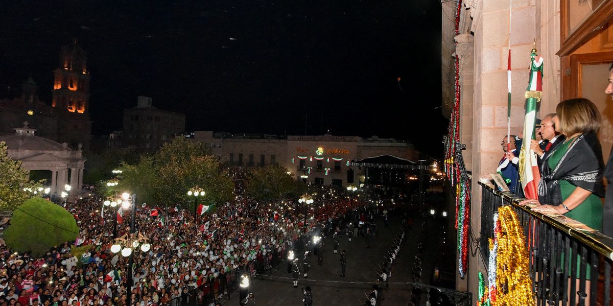 El mandatario estatal, acompañado por la Presidenta de la Junta Directiva del Sistema Estatal DIF, Lorena Valle Rodríguez, salió al balcón principal de Palacio de Gobierno ondeando la Bandera Nacional, en medio de exclamaciones de júbilo y un gran fervor patrio para dar paso al Grito de Independencia: Viva Miguel Hidalgo!, ¡Viva Jose María Morelos!,¡Viva Vicente Guerrero!, ¡Viva Josefa Ortiz De Domínguez!, ¡Viva Juan Aldama!, ¡Viva Ignacio Allende!, ¡Viva Mariano Jiménez!, ¡Viva México!,¡Viva México!, ¡Viva México!, ¡Viva San Luis Potosí!.