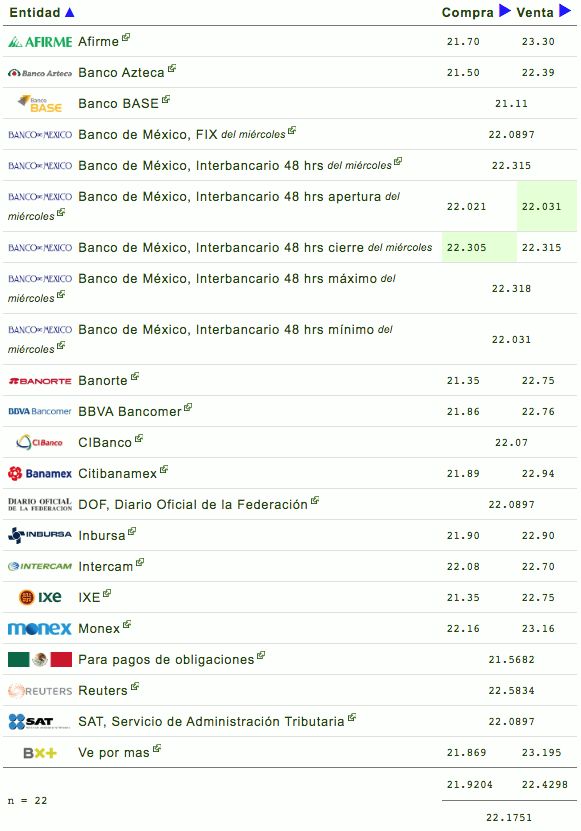 El tipo de cambio en ventanilla se encuentra en $21.86 a la venta en BBVA Bancomer, mientras que Banamex ofrece el dólar en $21.89 y Banorte $21.35