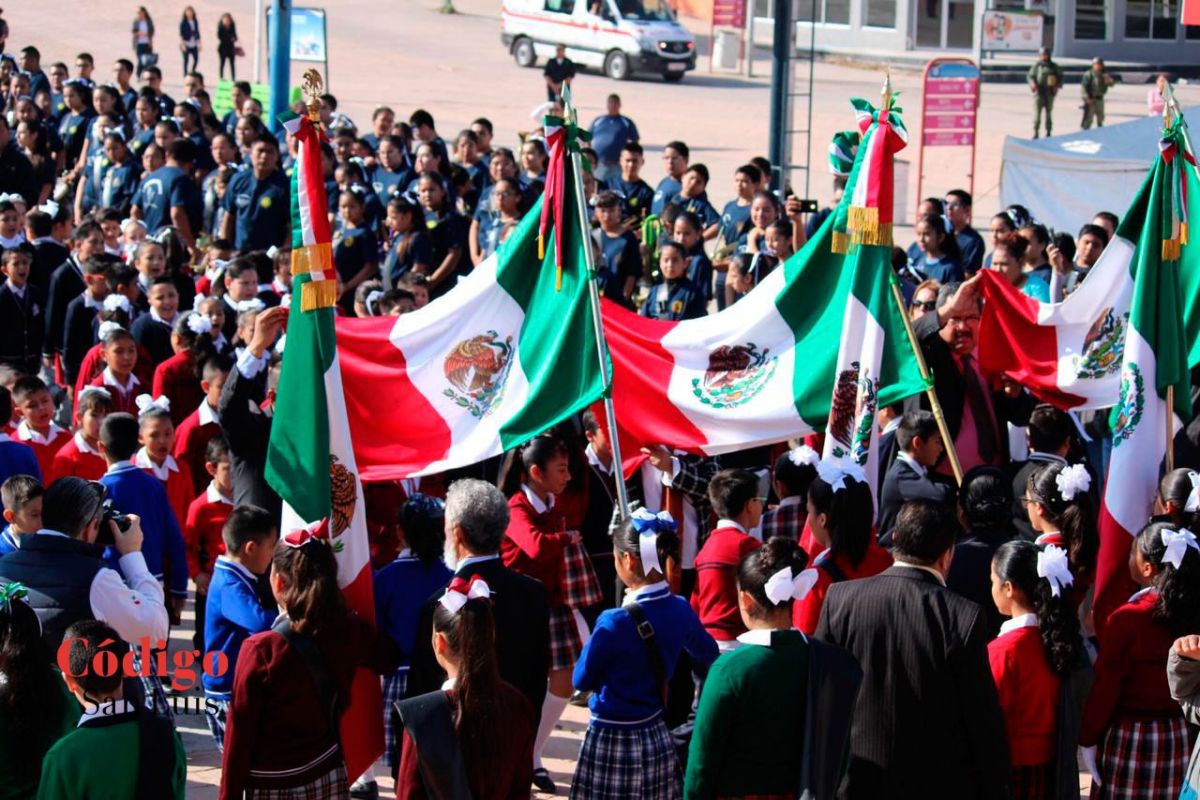 “La bandera es mucho más que un estandarte, es un legado de nuestros héroes, es un emblema que simboliza nuestra independencia, nuestra lucha, nuestros ideales, nuestros valores y nuestra identidad”, dijo el pequeño estudiante, ganador del concurso estatal de oratoria del SEER.