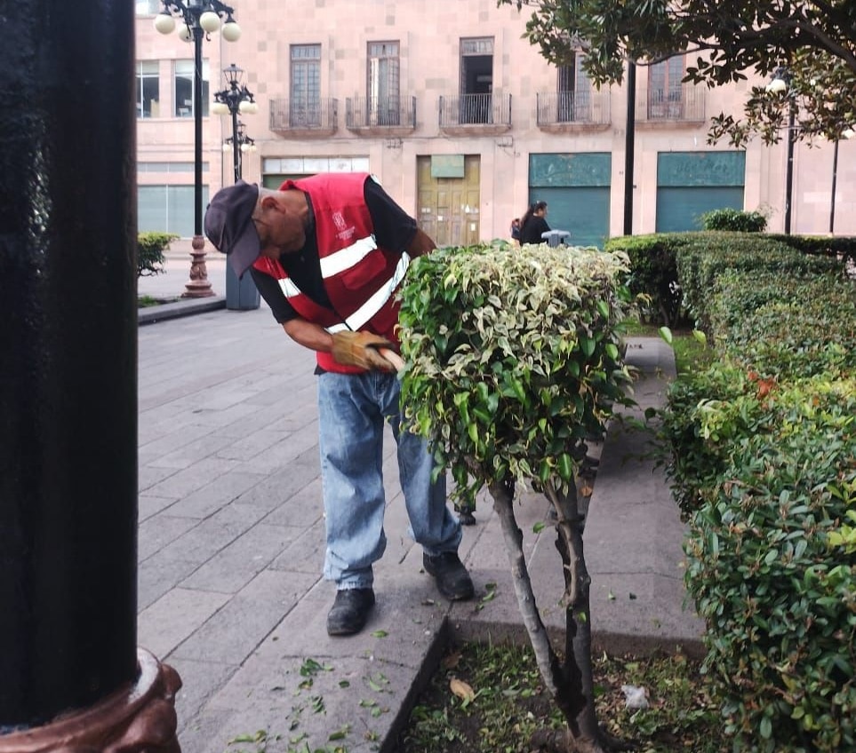La Dirección de Servicios Municipales del Ayuntamiento informó que en las últimas horas se realizaron diversas labores en el primer cuadro, entre ellas tareas de limpieza y mantenimiento en espacios como la Explanada Ponciano Arriaga, Plaza Aranzazú, Plaza de Armas y la Alameda.