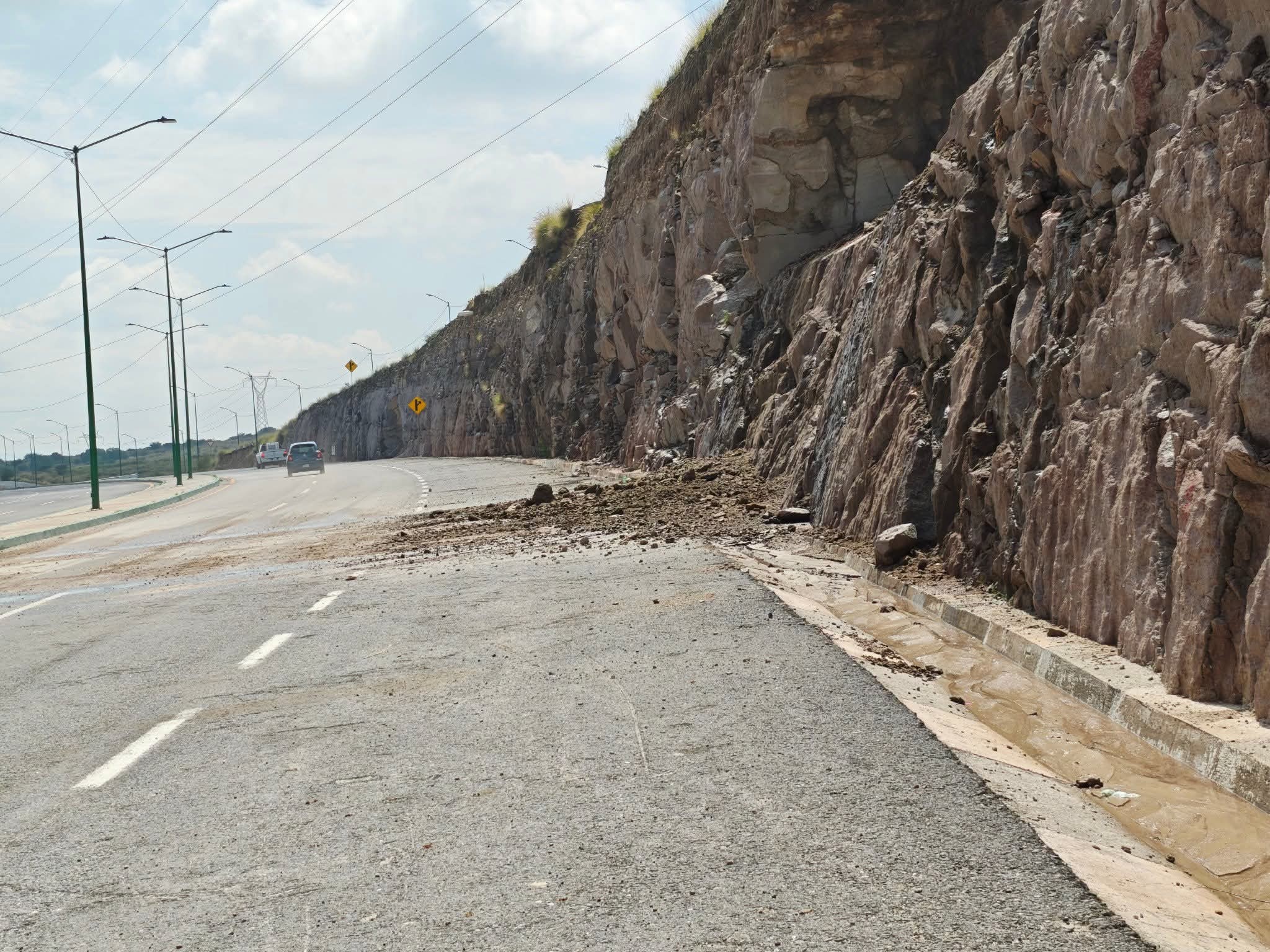 Un tramo de la nueva vialidad terminó destruido, luego se desplomara una pared del cerro, mismo que también funcionaba como el suelo de un paso vehicular lateral. Esta situación mantiene en alerta a la población, pues todavía se pronostican precipitaciones en la capital potosina, lo que ha motivado a algunos conductores a evitar la zona por riesgo de deslaves.