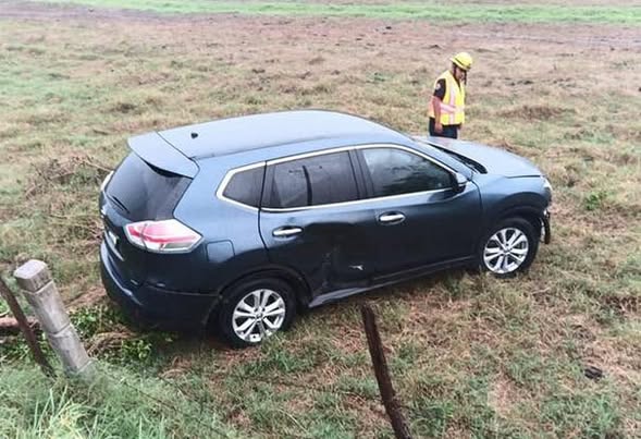 Las intensas lluvias registradas durante las últimas horas provocaron un accidente vehicular en la carretera que conecta a Ciudad Valles con Ébano, luego de que el conductor de una camioneta SUV azul perdiera el control del volante y saliera del camino, impactando contra un poste de concreto perteneciente a una cerca.