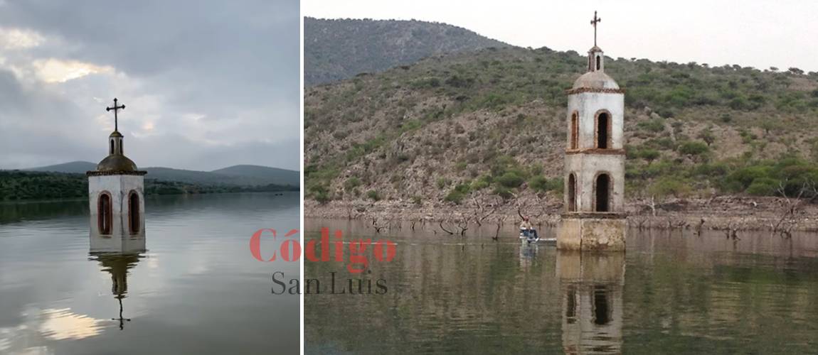Uno de los parámetros para las personas que viven cerca del Templo es la cruz en la punta de la iglesia. Por el cauce del Río Jofre que llega desde San Luis de la Paz, el nivel del agua ha sumergido en su totalidad la torre del campanario.