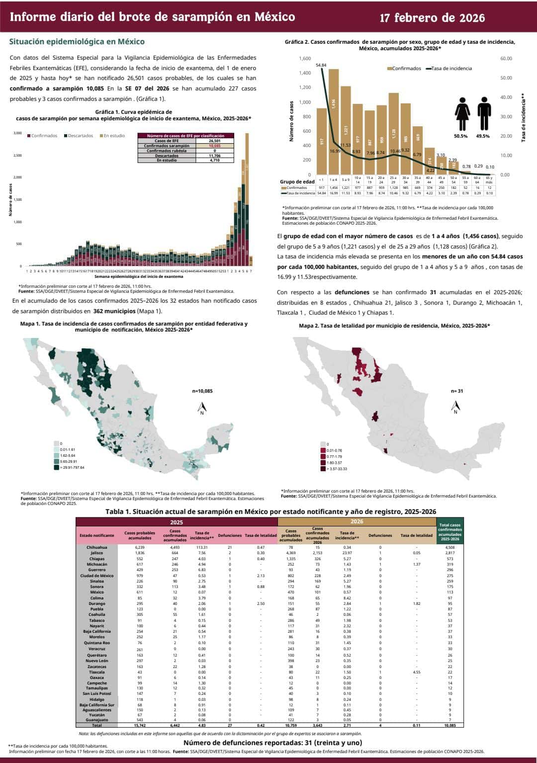 En San Luis Potosí, del 1 de enero al 17 de febrero de este año se han confirmado 3 casos de sarampión, y mediante el trabajo coordinado entre instituciones del sector salud, se ha vacunado a más de 300 mil personas para protegerles de la enfermedad.