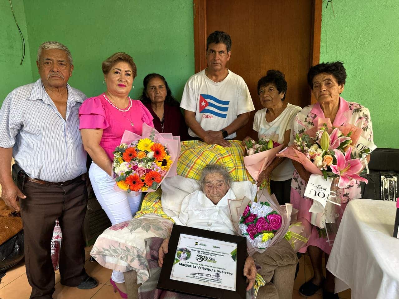 Por ser un ejemplo de ciudadana entregada a su comunidad y reflejo del esfuerzo y los valores que distinguen a las familias soledenses, doña Margarita recibió un reconocimiento a nombre del Alcalde de Soledad de Graciano Sánchez, Juan Manuel Navarro Muñiz.
