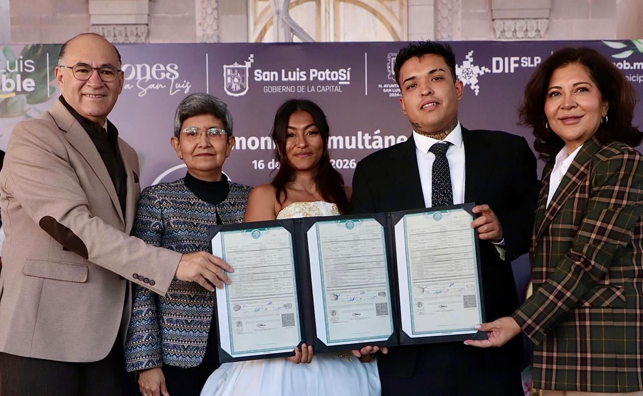 Vestidas de blanco, con ramo en manos y un pastel con flores recordando esta fecha especial, es que 217 parejas de San Luis Capital se casaron por el civil en la ceremonia “Da el sí con la Familia”, en la que el Presidente Municipal Enrique Galindo Ceballos y la titular del DIF Municipal, Estela Arriaga Márquez, firmaron como testigos de honor.