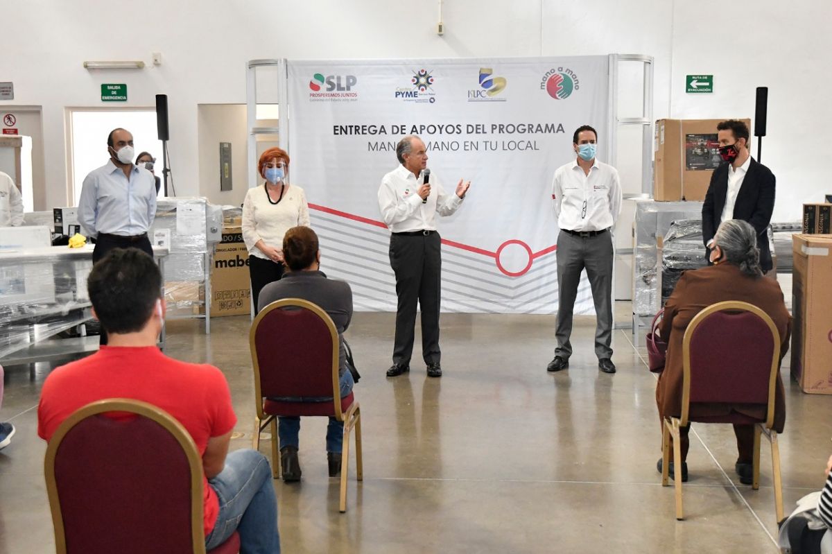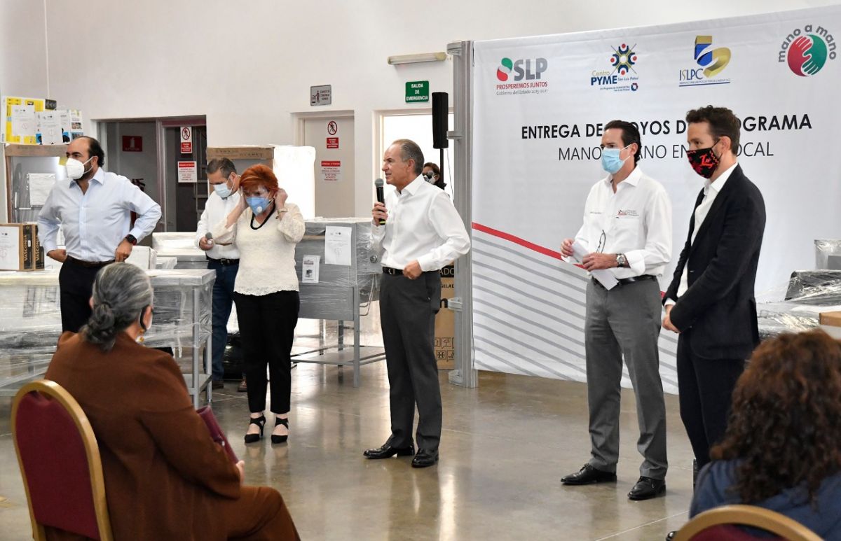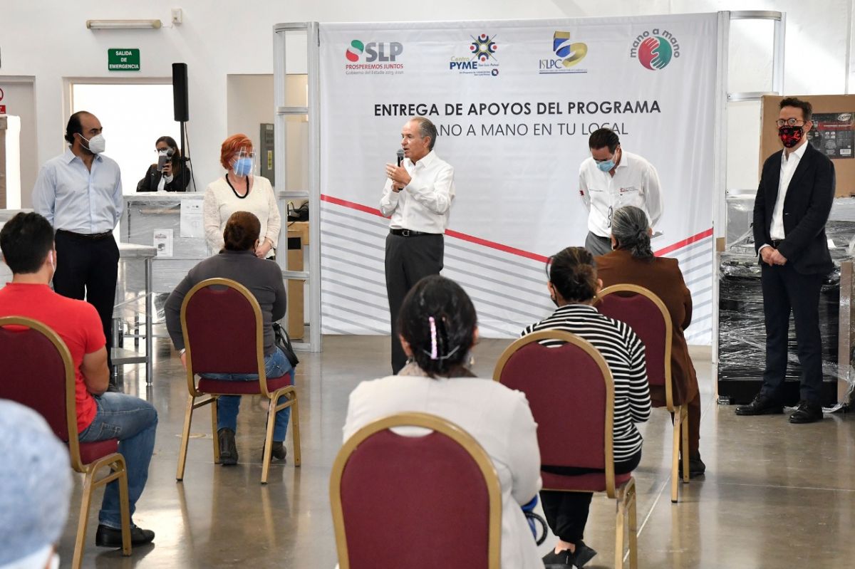 Durante la entrega de 250 apoyos del municipio de San Luis Potosí del programa “Mano a Mano en tu local”, que en total beneficiará a 2 mil 700 micro negocios y emprendedores, con una inversión de 43 millones de pesos, el Gobernador del Estado, Juan Manuel Carreras López, hizo un reconocimiento a las y los dueños de pequeños comercios por su contribución al desarrollo y dinamismo de la entidad así como a la generación de fuentes de trabajo durante la pandemia de Covid-19, misma que continúa presente en el mundo y que ha afectado a todos los sectores económicos.