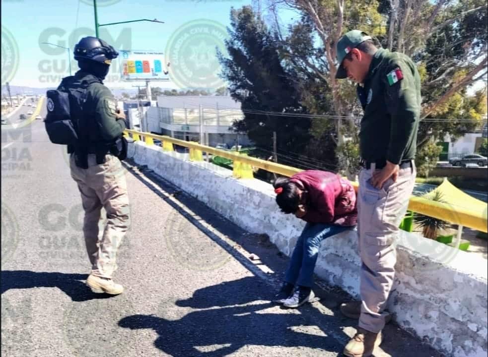 En una atención inmediata a un reporte ciudadano, oficiales de la Guardia Civil de Soledad de Graciano Sánchez lograron salvaguardar la integridad de una mujer que intentaba arrojarse de un puente vehicular, a la altura de la colonia Foresta. Posteriormente, fue canalizada ante la Unidad de Atención a la Violencia Familiar (UAVI), adscrita a la corporación municipal, para recibir atención y acompañamiento psicológico.