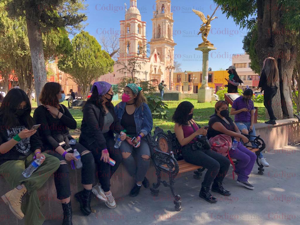 Mientras gritaban dentro del kiosco que se encuentra en el centro de la Plaza de Armas de Matehuala, a la vez pegaban carteles en muestra de desacuerdo por las diferencias que hay entre los dos sexos. «No somos el sexo débil» decían varias de ellas, levantando los brazos y con voz fuerte.