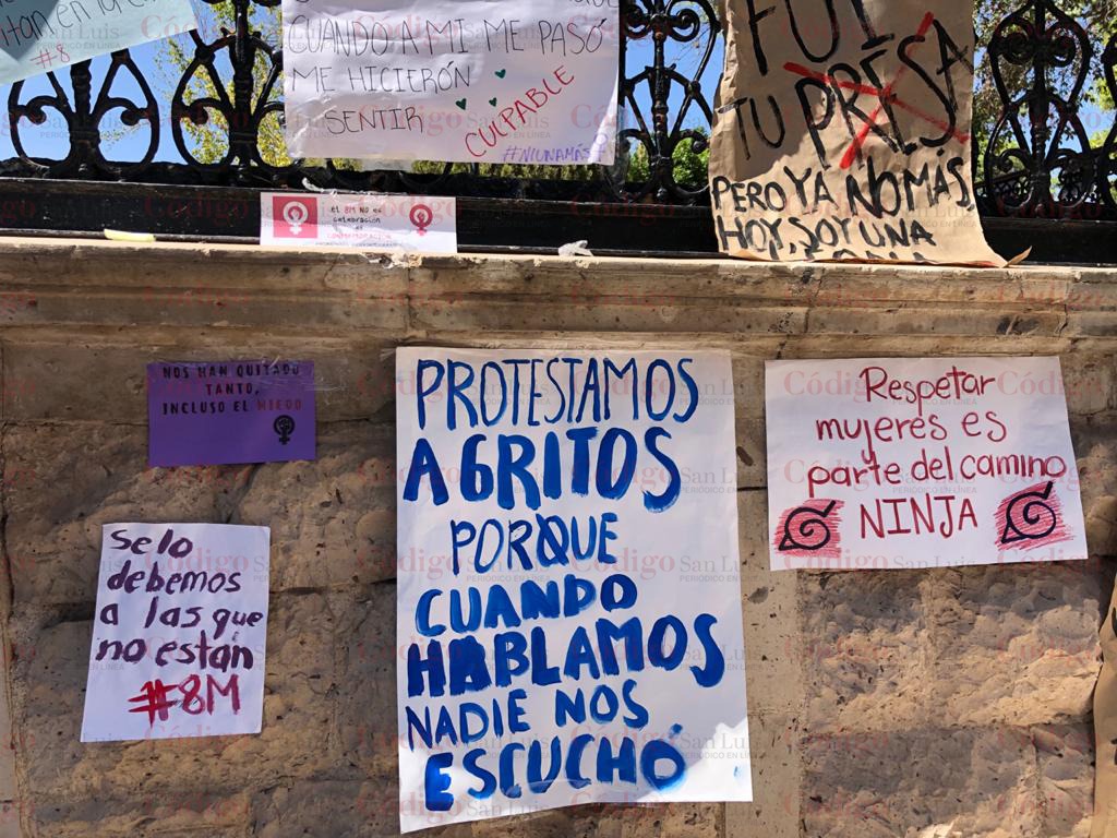 Entre lo que gritaban, pedían a las demás mujeres, que no se callaran, que denunciaran a sus agresores, que no estaban solas, decían que tenían miedo de no regresar a casa al salir de la escuela, pedían poder vestir como cada una quisiera, que el portar una minifalda no les daba el derecho a faltarles al respeto con piropos ofensivos, mucho menos a que las tocaran sin su consentimiento.