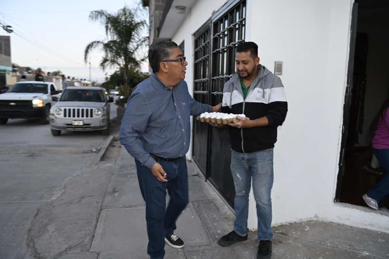 El Alcalde Juan Manuel Navarro Muñiz subrayó que se trata de un programa mensual, sin distinción y de alcance municipal. “Este es un programa alimentario emergente que viene a complementar la canasta básica; iniciamos con la entrega de huevo por ser un producto de consumo inmediato y de primera necesidad, pero vamos a recorrer todas las colonias y de manera permanente, porque el apoyo es para todas las familias de Soledad, sin colores y tocando casa por casa”.